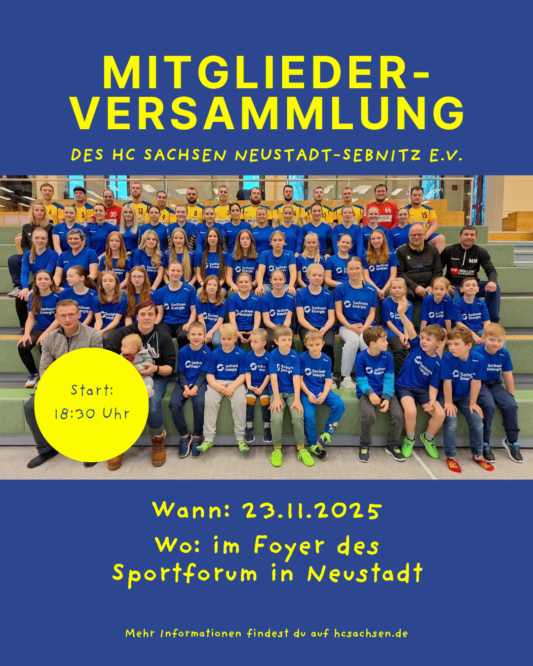 Diese findet am Sonntag, den 23. November 2025, um 18:30 Uhr im Sportforum Neustadt in Sachsen statt – direkt im Anschluss an den Heimspieltag unserer Mannschaften.